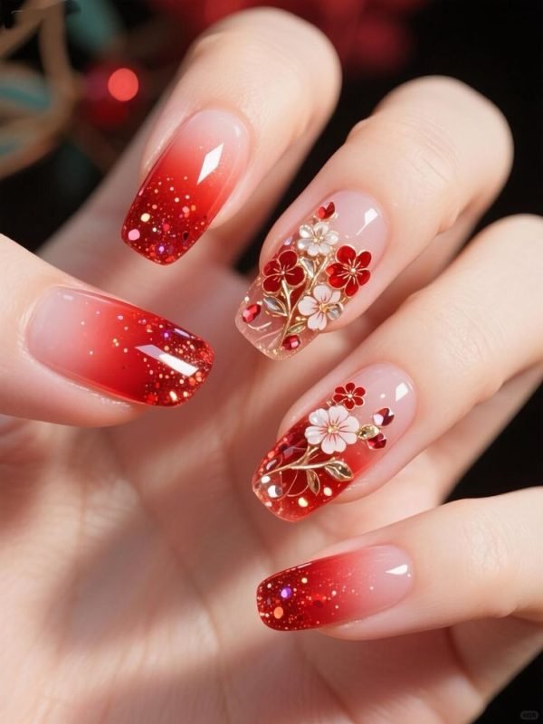 Phong cách Nail mang đậm hơi thở nghệ thuật phương Đông, kết hợp giữa sự sang trọng, tinh tế và nét cổ điển đầy cuốn hút. Điểm nổi bật của phong cách này là gam màu đỏ – biểu tượng của may mắn và quyền lực – kết hợp cùng ánh vàng kim sang trọng….