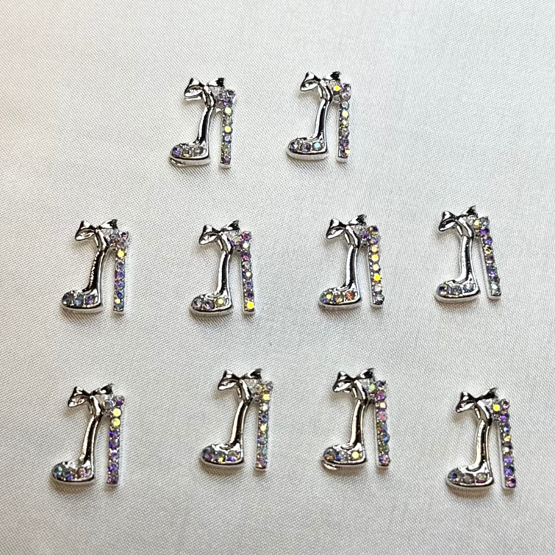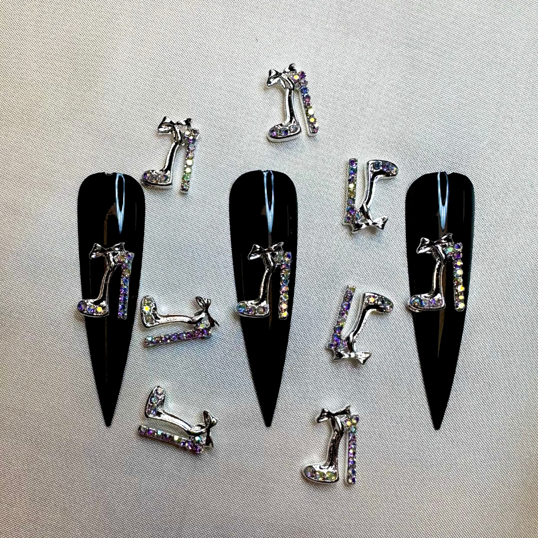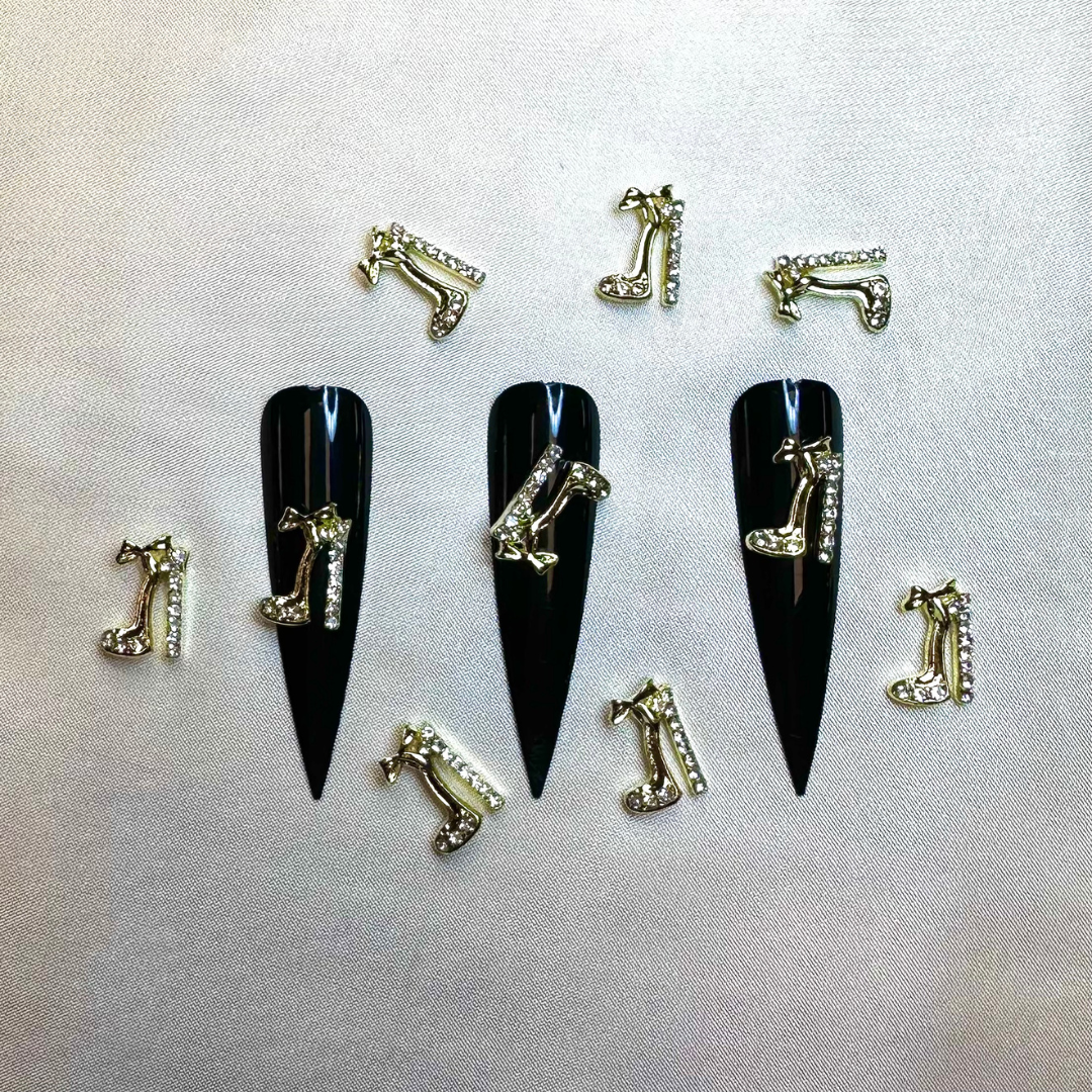 High Heels Nail Rhinestone 3D Alloy High Heel Shoes With Gems Design Gold Silver Nail Charms for