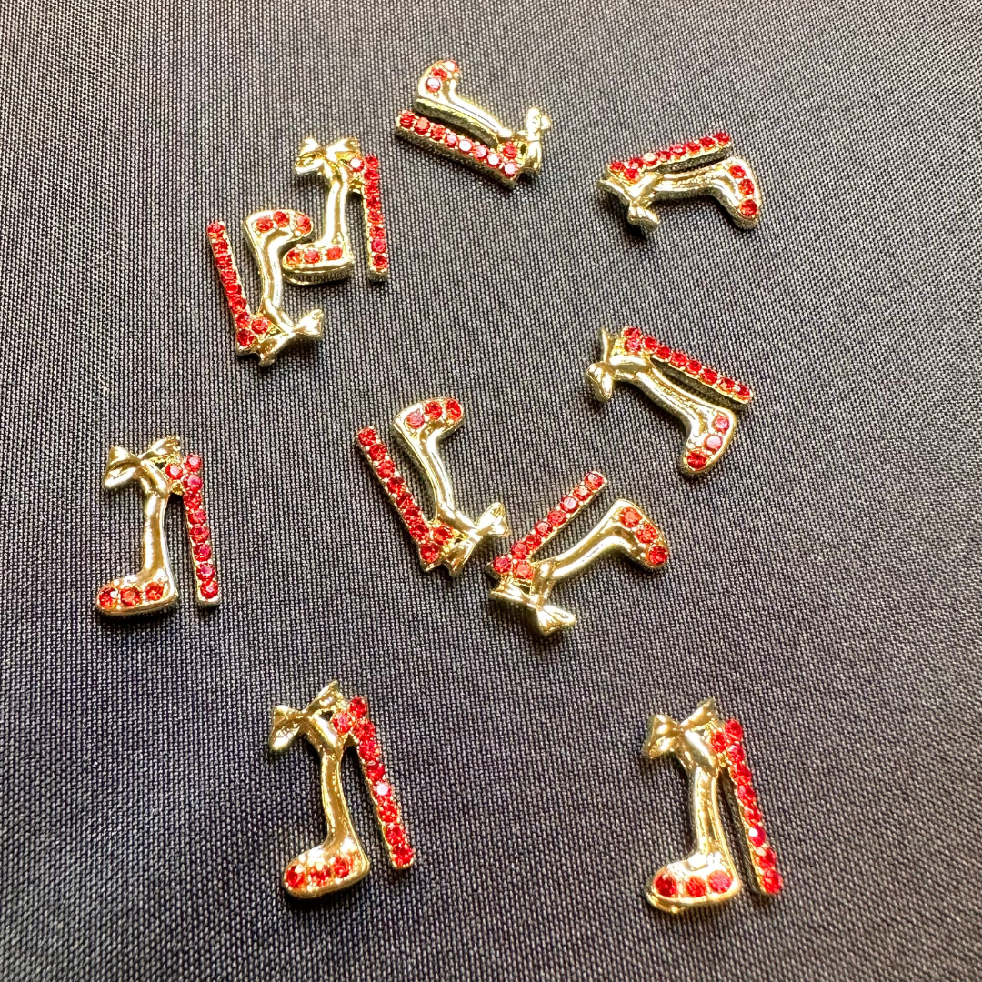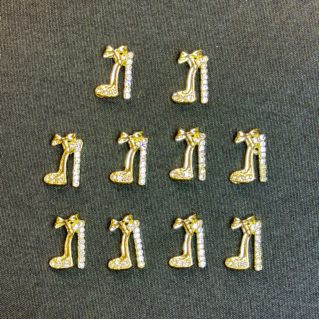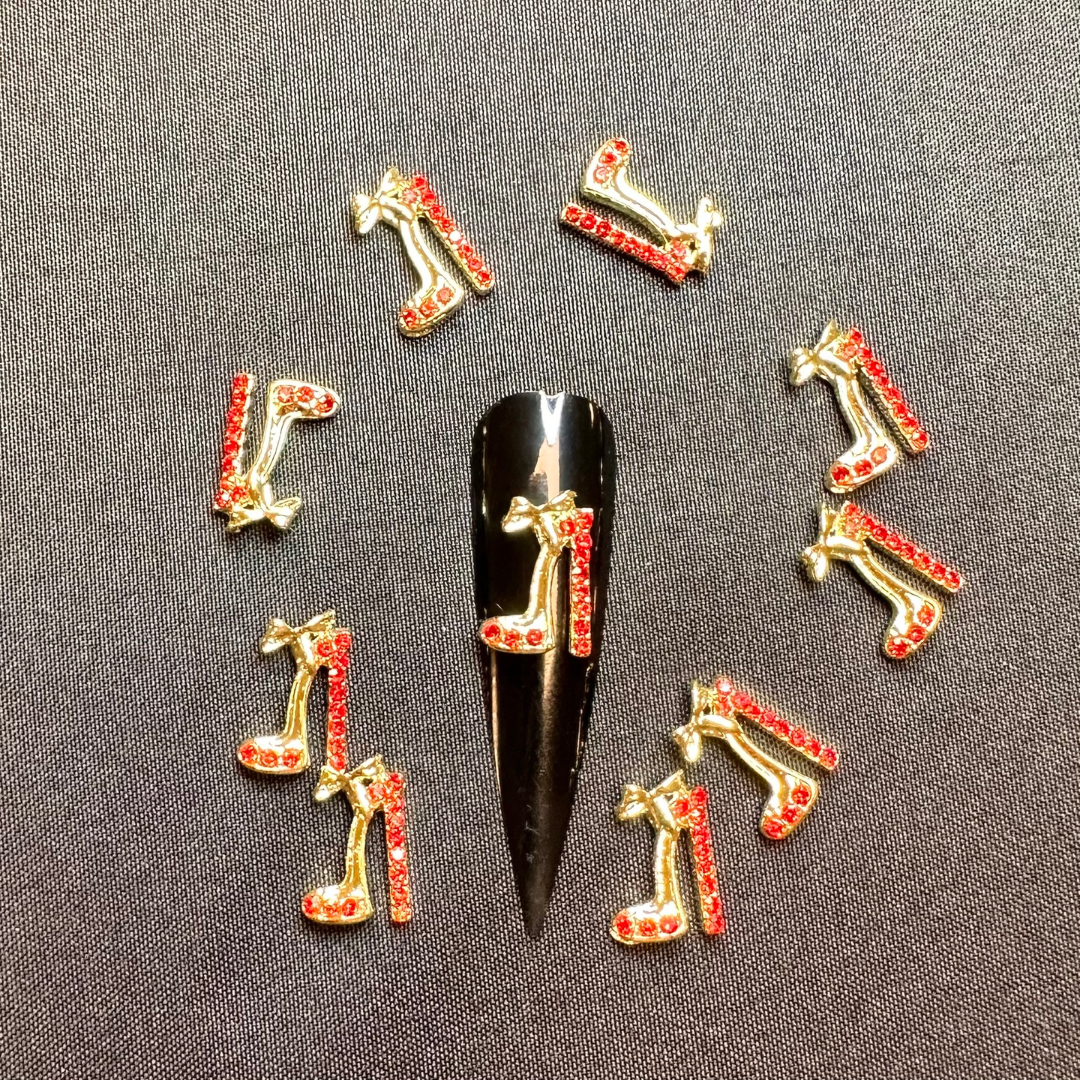 High Heels Nail Rhinestone 3D Alloy High Heel Shoes With Gems Design Gold Silver Nail Charms for